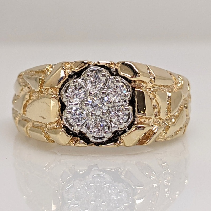 10K .24 CARAT TOTAL WEIGHT SI1 H DIAMOND ROUND (7) CLUSTER NUGGET ESTATE RING 7.1 GRAMS