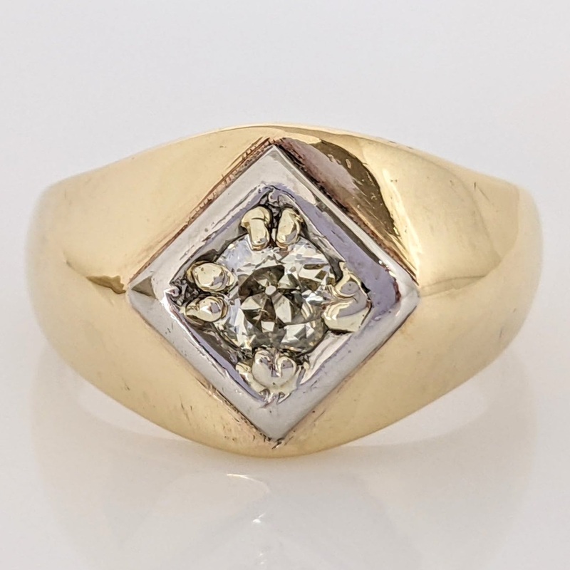 Introducing the stunning 10K gold estate ring, featuring a total of 0.61 carats in I1 P grade round diamond. The beautifully crafted design showcases the sparkling diamond, creating a luxurious and sophisticated statement piece. Elevate your jewelry collec