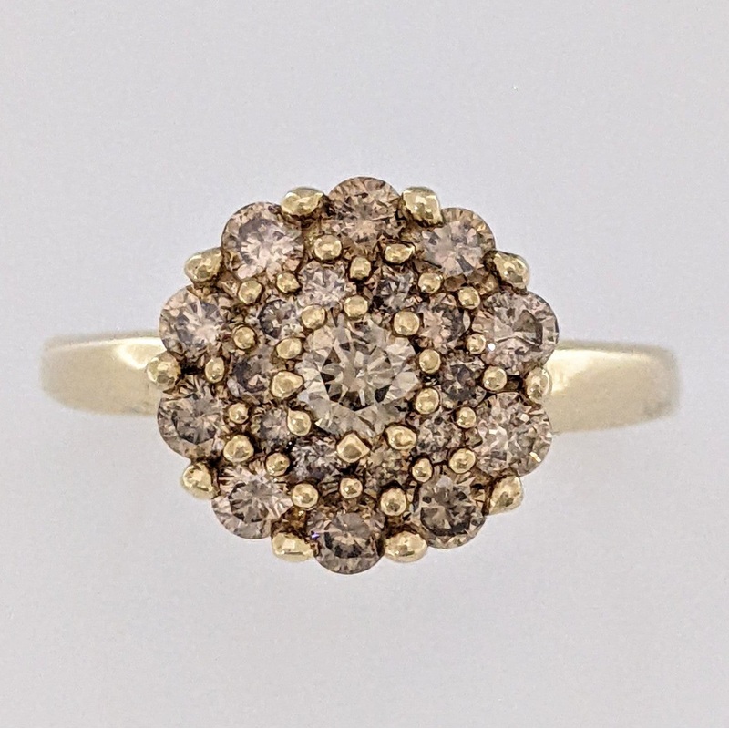 10K .75 CARAT TOTAL WEIGHT SI2 CHAMPAGNE ROUND (21) ESTATE CLUSTER RING 4.0 GRAMS