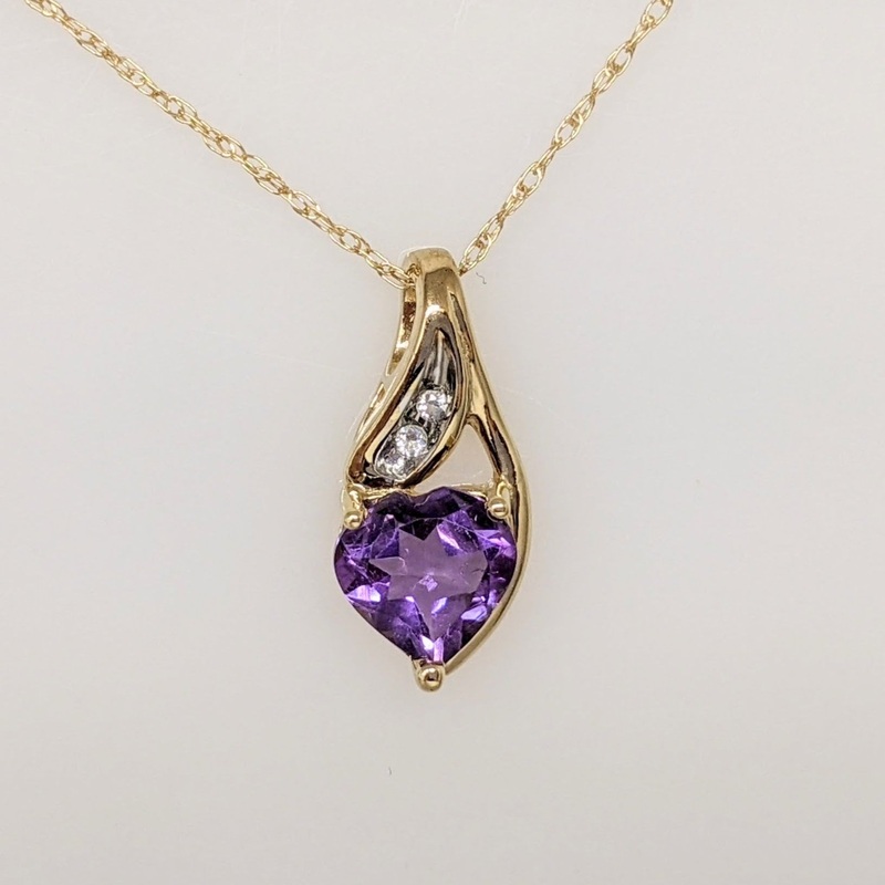 10K AMETHYST HEART 7MM WITH (2) MELEE ESTATE PENDANT & CHAIN 1.6 GRAMS