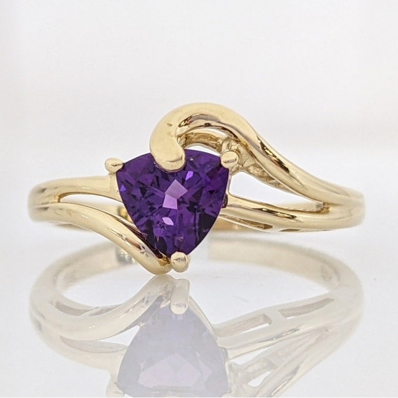 10K AMETHYST TRILLION CUT 6MM BYPASS ESTATE RING 2.3 GRAMS
