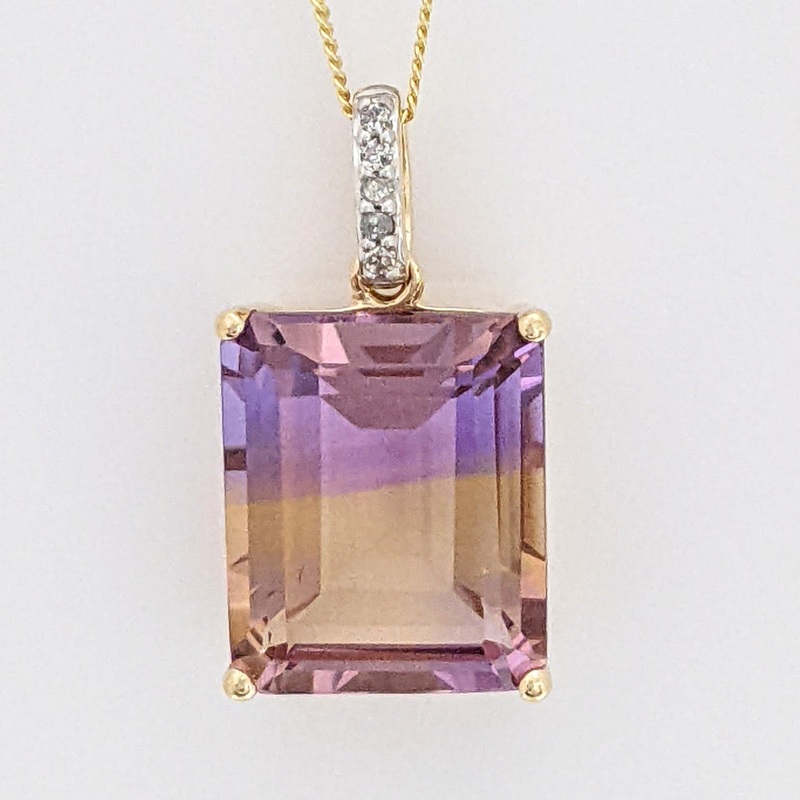 10K AMETRINE EMERALD CUT 10X12 WITH (5) MELEE ESTATE PENDANT & CHAIN 2.5 GRAMS