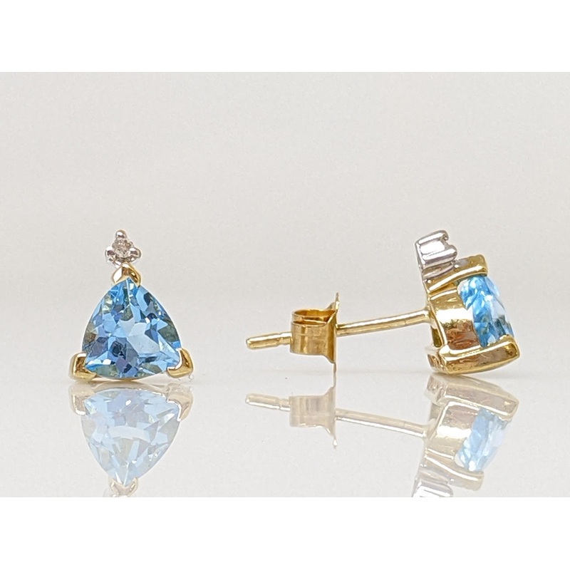 ON52480498310K BLUE TOPAZ TRILLION 5MM WITH DIAMOND ESTATE STUD EARRINGS 1.2 GRAMS