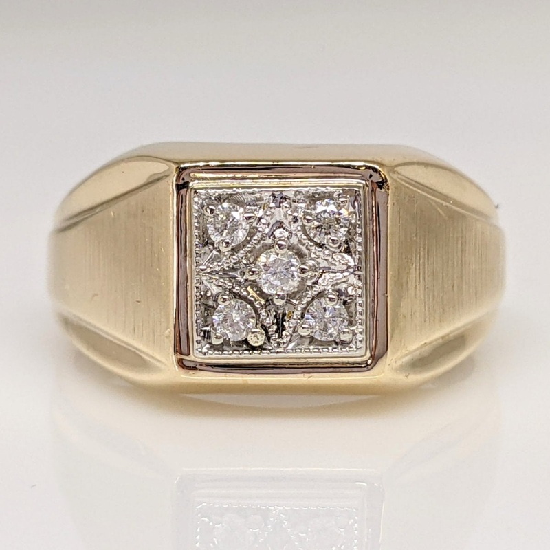 10K DIAMOND ROUND (5) SQUARE TOP ESTATE RING 5.2 GRAMS