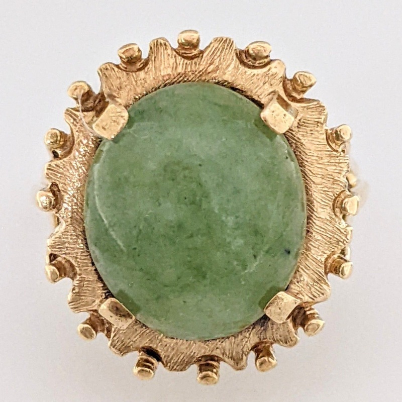 10K JADE OVAL 12X14 CABOCHON WITH GOLD TRIM ESTATE RING 6.5 GRAMS
