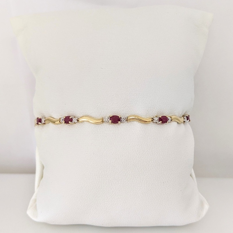 10K RUBY OVAL (9) 3X4 WITH (2) MELEE ESTATE BRACELET 3.5 GRAMS
