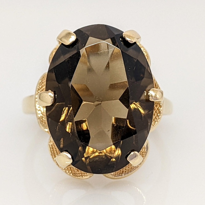 ON52480410910K SMOKEY QUARTZ OVAL 13X18 WITH SCALLOPED TRIM ESTATE RING 6.4 GRAMS