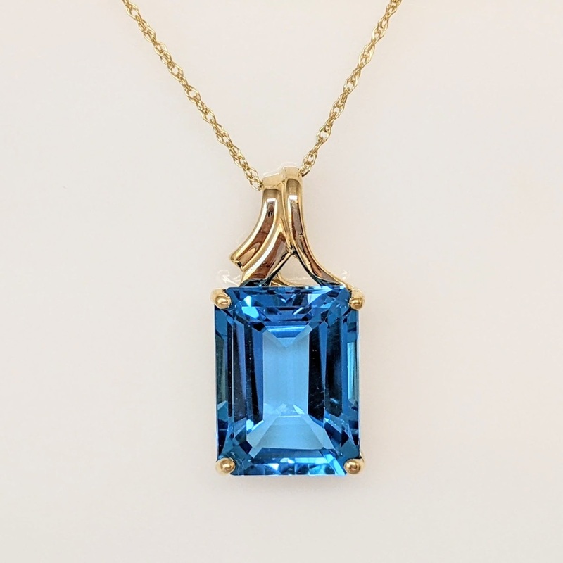 10K SWISS BLUE TOPAZ EMERALD CUT 12X16 ESTATE PENDANT & CHAIN 6.6 GRAMS