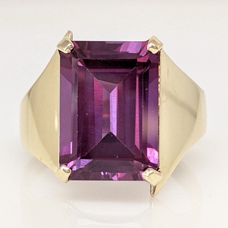10K SYNTHETIC CORUNDUM EMERALD CUT 10X14 ESTATE RING 6.2 GRAMS