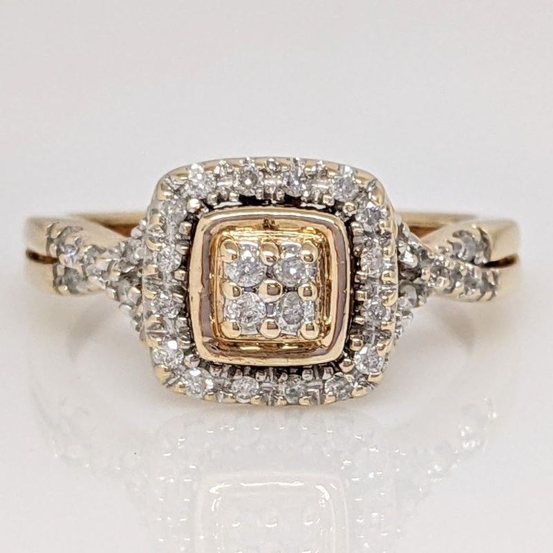 10K TWO TONE .42 CARAT TOTAL WEIGHT DIAMOND ROUND (3) SQUARE HALO ESTATE RING 3.4 GRAMS