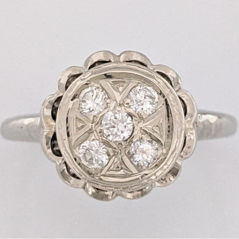 10K WHITE .22 CARAT TOTAL WEIGHT I1 H DIAMOND ROUND (5) CIRCLE CLUSTER ESTATE RING 2.7 GRAMS