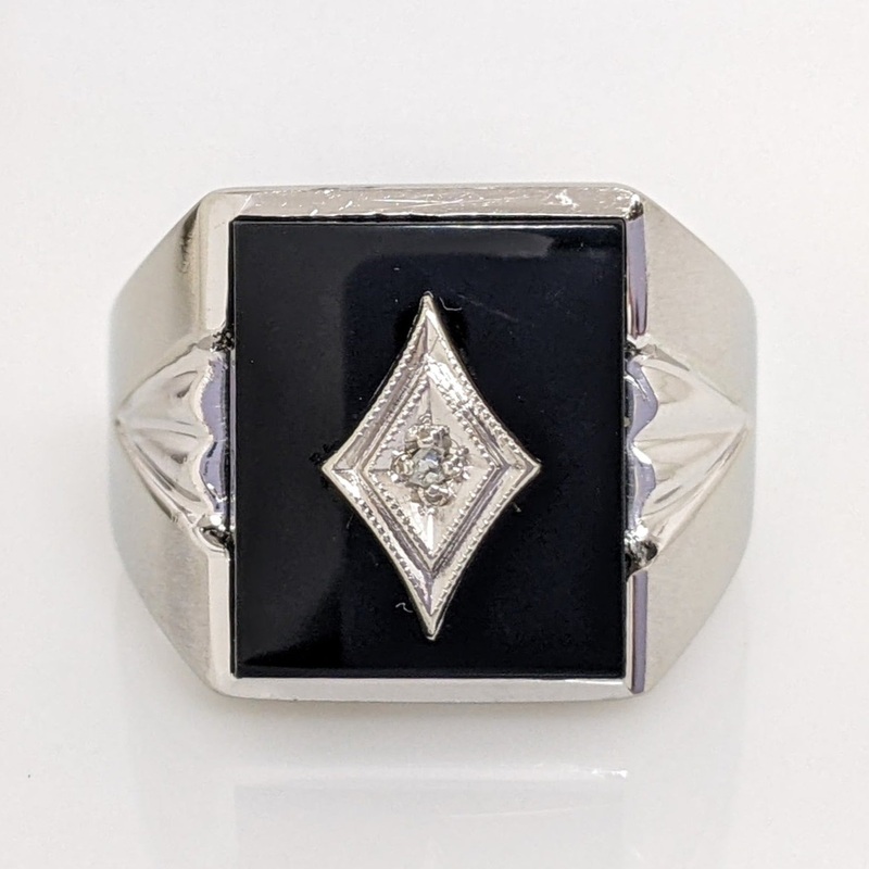 10K WHITE ONYX EMERALD CUT 12X14 WITH MELEE ESTATE RING 5.2 GRAMS