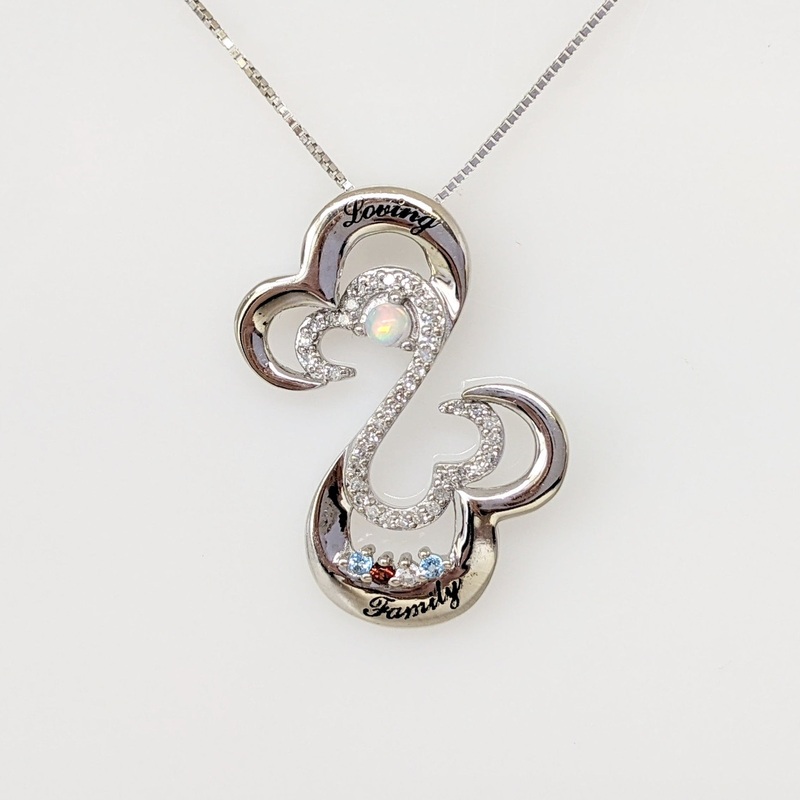 10K WHITE OPEN HEART WITH MELEE BIRTHSTONE FAMILY ESTATE PENDAND & CHAIN 3.7 GRAMS