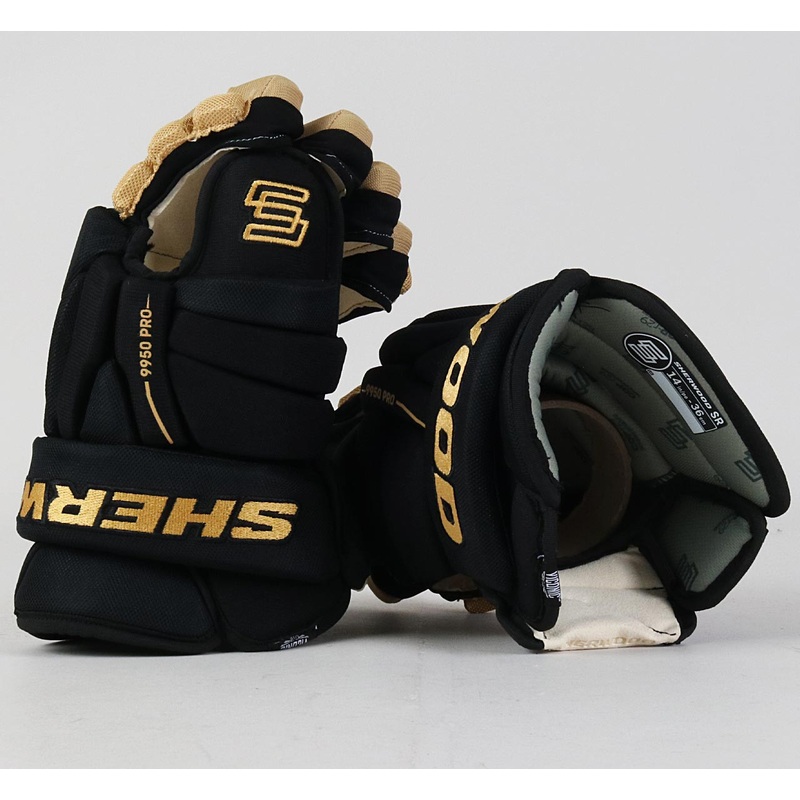 These gloves can be personalized with your name and/or number for only $15! Brand Sherwood SKU: UPC: Team Vegas Golden Knights Player Team Stock Primary Color Black Model 9950 Pro Cuff Yes Size 13" Width Standard Personalization Available Yes