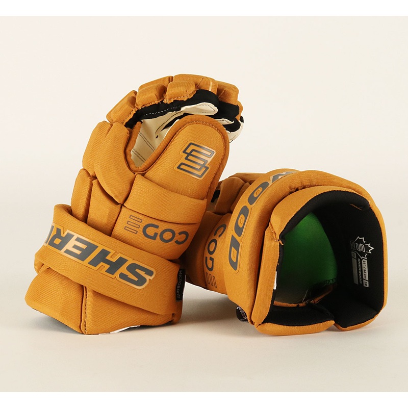 These gloves can be personalized with your name and/or number for only $15! Brand Sherwood SKU: UPC: Team Vegas Golden Knights Player Team Stock Primary Color Gold Model Code Encrypt 1 Cuff Yes Size 13" Width Standard Personalization Available Yes