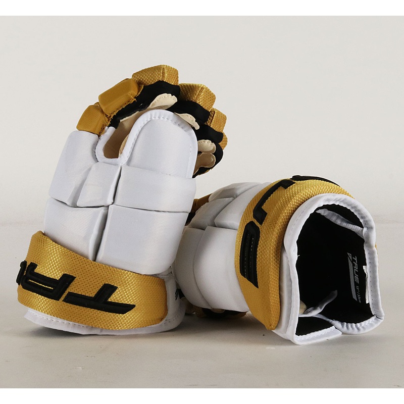 These gloves can be personalized with your name and/or number for only $15! Brand TRUE SKU: UPC: Team Vegas Golden Knights Player Team Stock Primary Color White Model 4 Roll Pro Cuff Yes Size 13" Width Standard Personalization Available Yes