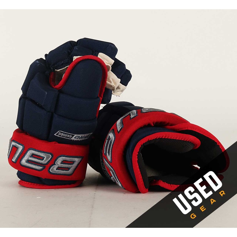 These gloves have been used. The palms and exterior show noticeable wear and may have a lingering hockey odor. Brand Bauer SKU: UPC: Team Columbus Blue Jackets Player Erik Gudbranson Primary Color Navy Blue Model Pro Series Cuff Yes Size 14" Width Standard