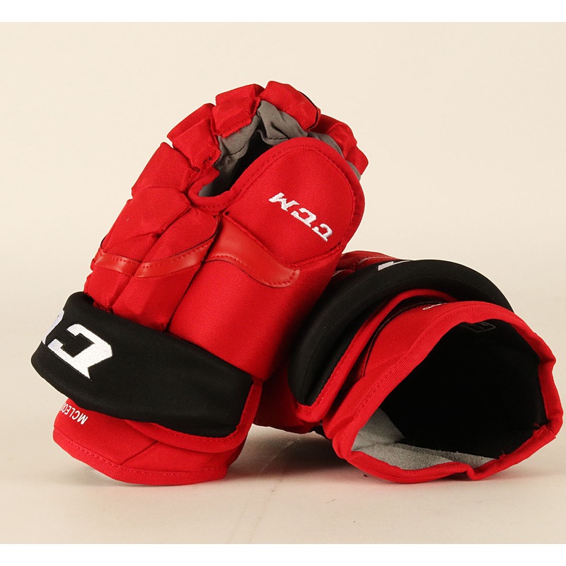 14" CCM HG12 Gloves - Michael McLeod New Jersey Devils Brand CCM SKU: UPC: Team New Jersey Devils Player Michael McLeod Primary Color Red Model HG12 Cuff Yes Size 14" Width Standard