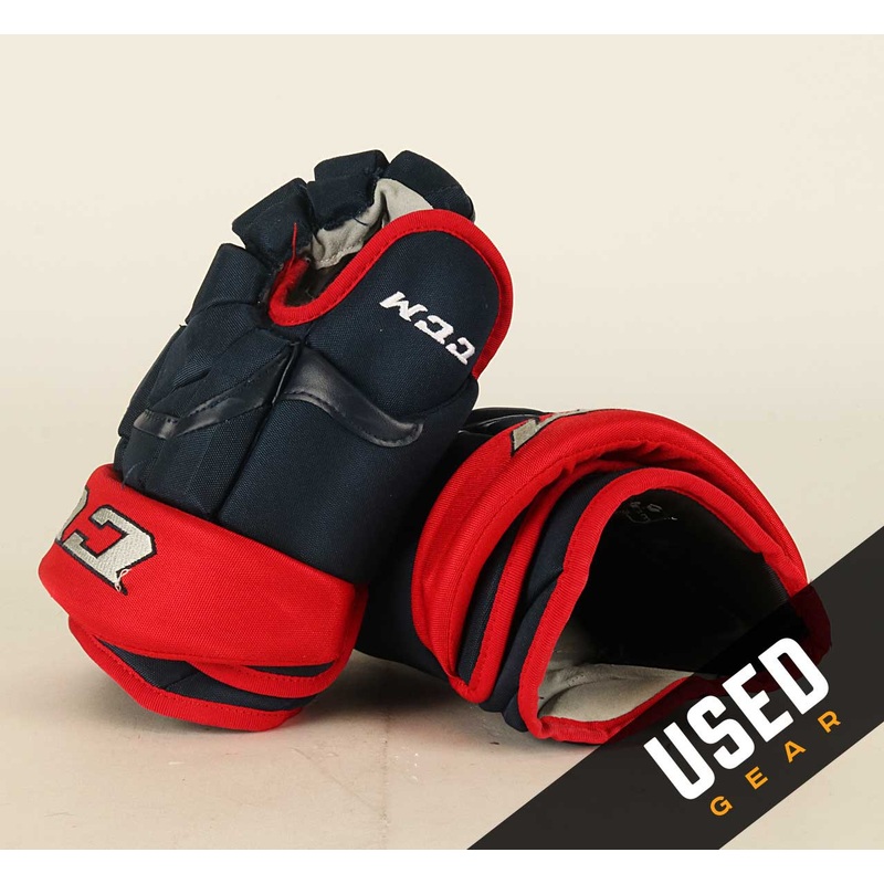 These gloves have been used. The palms and exterior show noticeable wear and may have a lingering hockey odor. Brand CCM SKU: UPC: Team Columbus Blue Jackets Player Team Stock Primary Color Navy Blue Model HG12 Cuff Yes Size 14" Width Standard Age Group Se