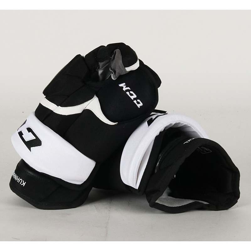 14" CCM HG12 Gloves - Tom Kuhnhackl Pittsburgh Penguins Brand CCM SKU: UPC: Team Pittsburgh Penguins Player Tom Kuhnhackl Primary Color Black Model HG12 Cuff Yes Size 14" Width Standard