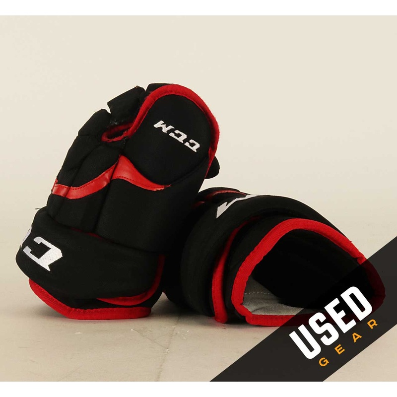 These gloves have been heavily used. The palms show significant wear, including rips, tears, and possibly prior repairs. They also have a strong hockey odor. Brand CCM SKU: UPC: Team Chicago Blackhawks Player Team Stock Primary Color Black Model HG12XP Cuf