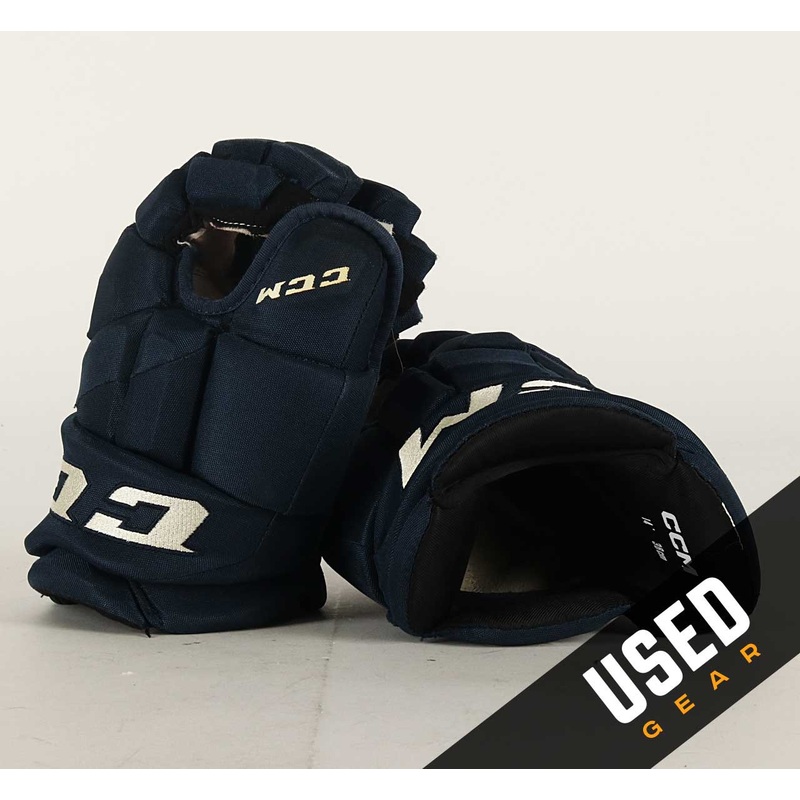 These gloves have been used. The palms and exterior show noticeable wear and may have a lingering hockey odor. Brand CCM SKU: UPC: Team Columbus Blue Jackets Player Team Stock Primary Color Navy Blue Model HGJSPP Cuff Yes Size 14" Width Standard Age Group