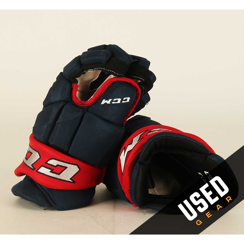 These gloves have been used. The palms and exterior show noticeable wear and may have a lingering hockey odor. Brand CCM SKU: UPC: Team Columbus Blue Jackets Player Alexandre Texier Primary Color Navy Blue Model HGPJS Cuff Yes Size 14" Width Standard Age G