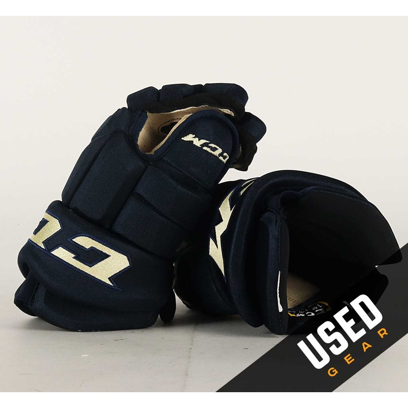 These gloves have been lightly used. The palms may show minor wear, and the gloves may have small markings. Brand CCM SKU: UPC: Team Columbus Blue Jackets Player Emil Bemstrom Primary Color Navy Blue Model HGTK Cuff Yes Size 14" Width Standard Age Group Se