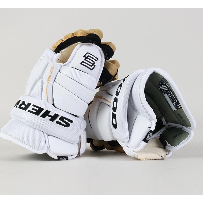 These gloves can be personalized with your name and/or number for only $15! Brand Sherwood SKU: UPC: Team Vegas Golden Knights Player Team Stock Primary Color White Model 9950 Pro Cuff Yes Size 14" Width Standard Personalization Available Yes