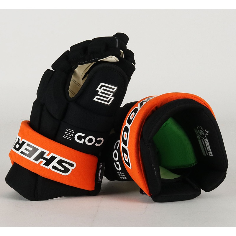These gloves can be personalized with your name and/or number for only $15! Brand Sherwood SKU: UPC: Team Anaheim Ducks Player Team Stock Primary Color Black Model Encrypt 1 Cuff Yes Size 14" Width Standard Personalization Available Yes