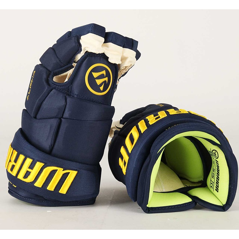 14" Warrior Alpha DX Pro Gloves - Team Stock Team Sweden Brand Warrior SKU: UPC: Team Team Sweden Player Team Stock Primary Color Navy Blue Model Alpha DX Pro Cuff Yes Size 14" Width Standard Age Group Senior