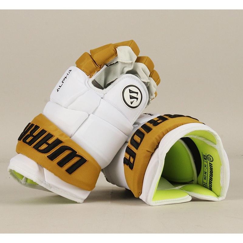 These gloves can be personalized with your name and/or number for only $15! Brand Warrior SKU: UPC: Team Vegas Golden Knights Player Team Stock Primary Color White Model Alpha DX Pro Cuff Yes Size 14" Width Standard Personalization Available Yes