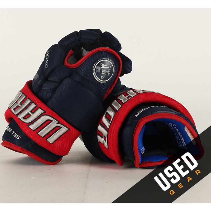 These gloves have been lightly used. The palms may show minor wear, and the gloves may have small markings. Brand Warrior SKU: UPC: Team Columbus Blue Jackets Player Cole Sillinger Primary Color Navy Blue Model Covert QRL Pro Cuff Yes Size 14" Width Standa