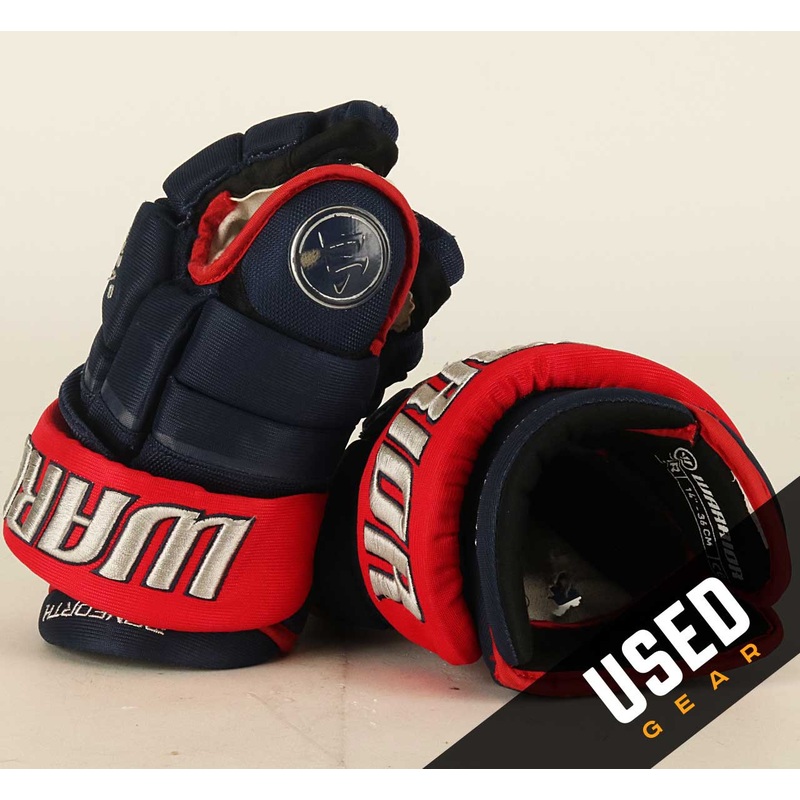These gloves have been heavily used. The palms show significant wear, including rips, tears, and possibly prior repairs. They also have a strong hockey odor. Brand Warrior SKU: UPC: Team Columbus Blue Jackets Player Justin Danforth Primary Color Navy Blue
