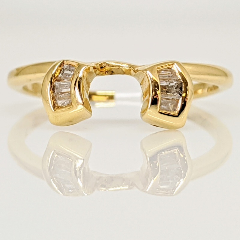 This 14K estate wrap features six .12 carat I1 I diamonds cut into baguettes, expertly crafted for a timeless look. An ideal choice for an effortless touch of sparkle.BIN 208SIZE 5