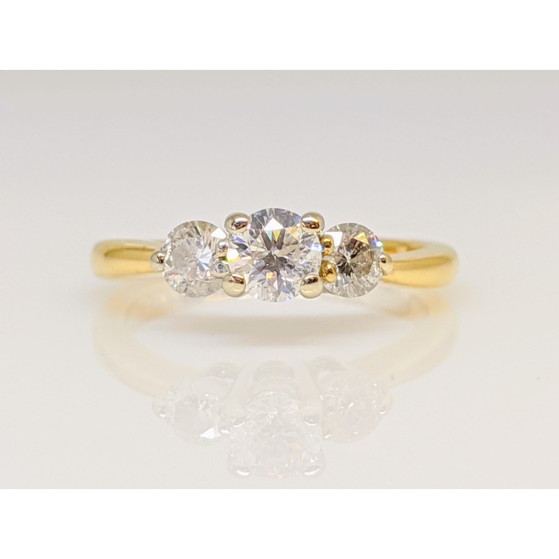 14K .53 CARAT TOTAL WEIGHT I1 F DIAMOND ROUND (3) TRINITY ESTATE RING 2.3 GRAMS
