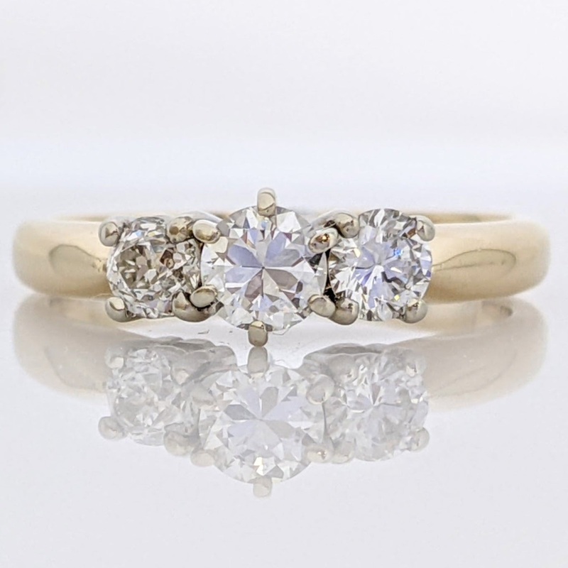 This 14K .67 carat Total Weight VS-SI2 G-I Diamond Round (3) Trinity Estate Ring is the perfect addition to any collection. Its three diamonds make it a classic symbol of quality and elegance, and its 3.4 grams of gold content ensure its enduring beauty and value.