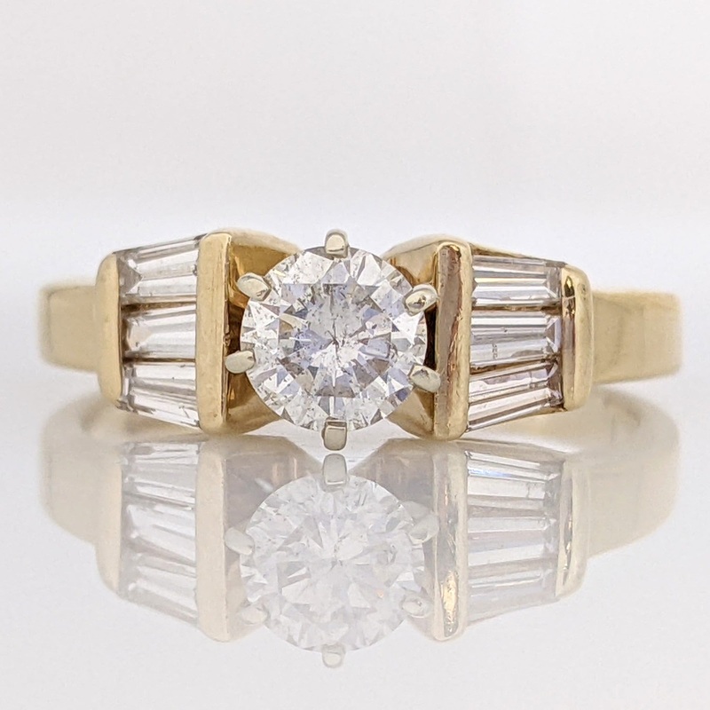 ON52480710214K .71 CARAT TOTAL WEIGHT I1 J DIAMOND ROUND WITH (6) BAGUETTE CUT ESTATE RING 2.6 GRAMS