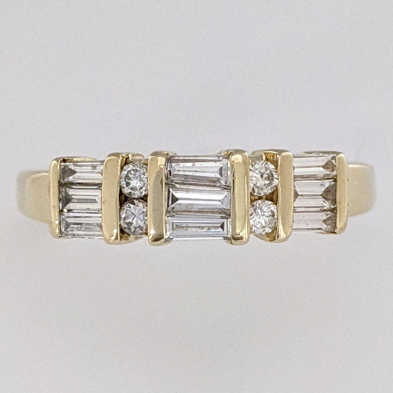 14K .84 CARAT TOTAL WEIGHT SI1 H DIAMOND ROUND (4) BAGUETTE CUT (9) ESTATE BAND 3.5 GRAMS