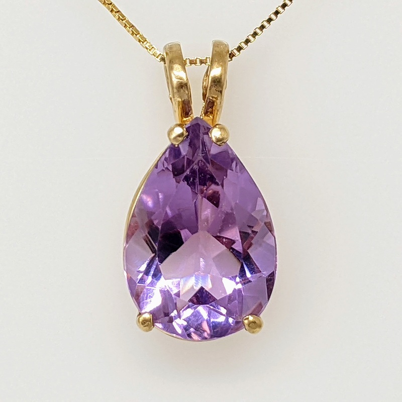 14K AMETHYST PEAR SHAPE 10X15 ESTATE PENDANT & CHAIN 3.4 GRAMS