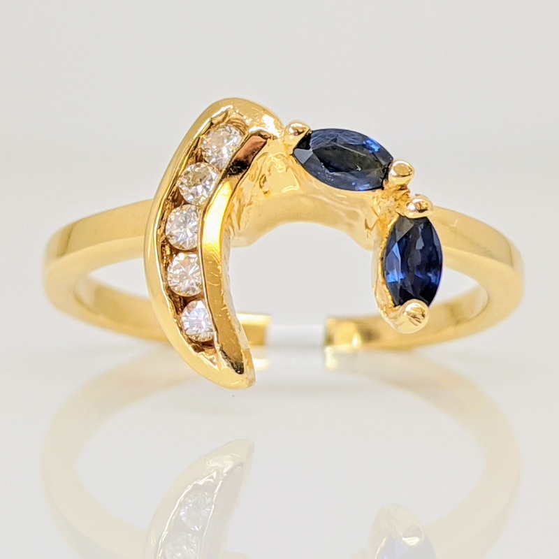 14K SAPPHIRE MARQUISE CUT (2) WITH (5) DIAMOND MELEE ESTATE WRAP 2.5 GRAMS