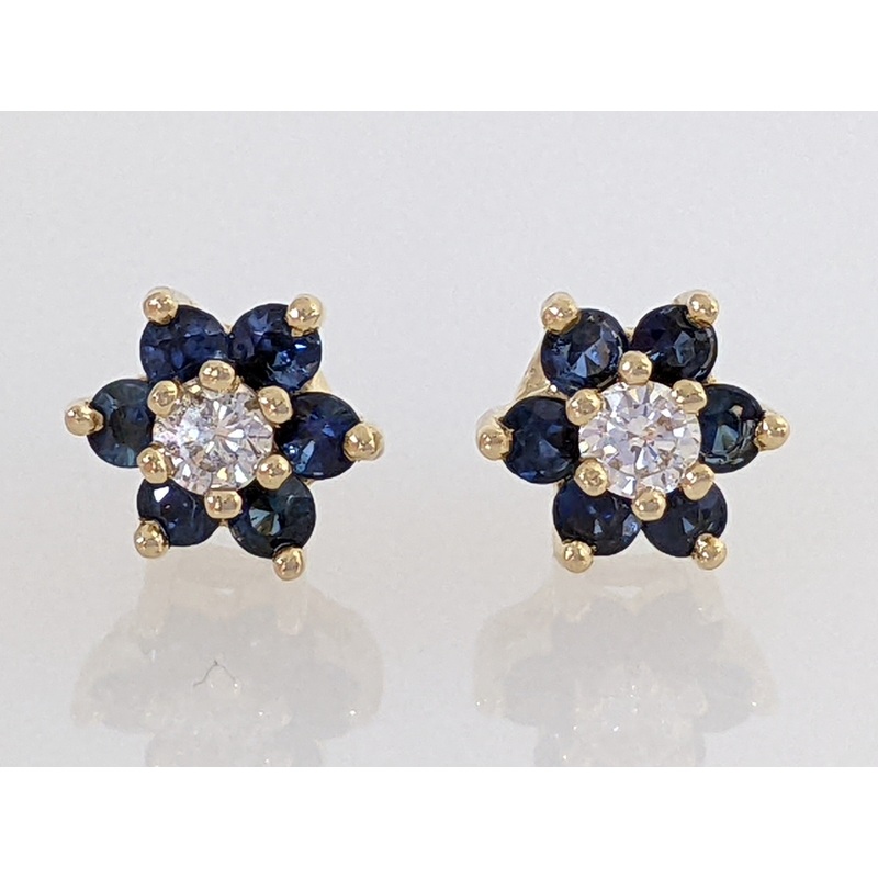 ON52480502914K SAPPHIRE ROUND (12) WITH .20 DIAMOND TOTAL WEIGHT ESTATE EARRINGS 1.9 GRAMS