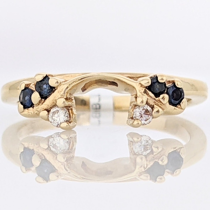 14K SAPPHIRE ROUND (4) WITH DIAMOND ROUND (2) ESTATE WRAP 2.7 GRAMS