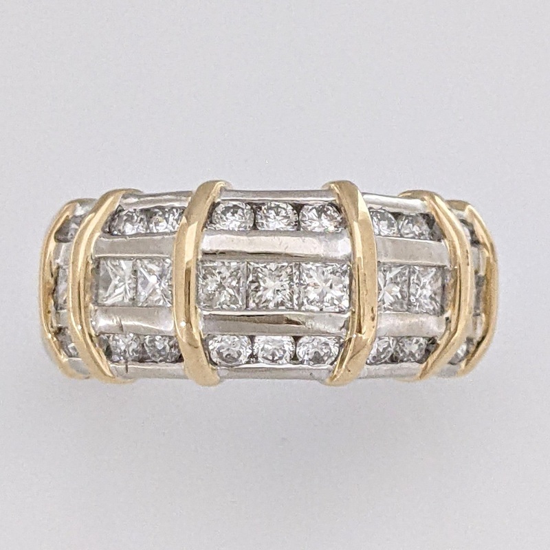 14K TWO-TONE 1.26 CARAT TOTAL WEIGHT SI2 G DIAMOND PRINCESS CUT (9) ROUND (18) ESTATE BAND 5.6 GRAMS