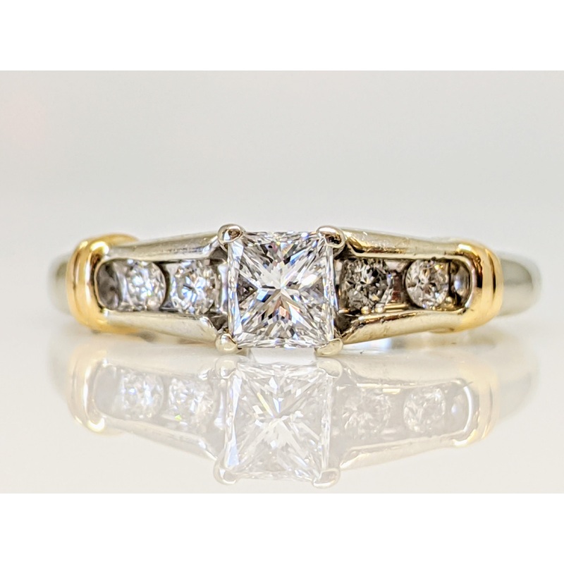 14K TWO-TONE .66 CARAT TOTAL WEIGHT SI1 I DIAMOND PRINCESS CUT WITH (4) ROUND ESTATE RING 3.6 GRAMS