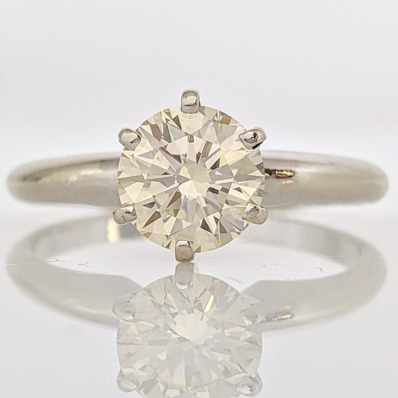 This 14KW estate ring features a round brilliant cut VS1 clarity, S color diamond at 1.05 carats. The mounting is expertly crafted in 14K white gold, weighing 2.5 grams. Enjoy a lifetime of sparkle with this stunning diamond solitaire.BIN 220SIZE 6