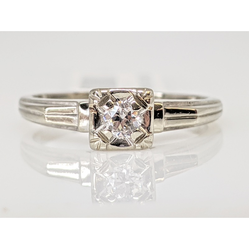 14K WHITE .10 CARAT TOTAL I1 H DIAMOND ROUND BOXHEAD ESTATE RING 2.2 GRAMS