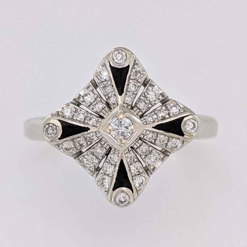 This 14KW estate ring is made from high-quality materials and features a stunning 0.42 carat total weight I1 I diamond in a round cut square top setting. This ring also features a 4.2 gram weight for a luxurious feel.