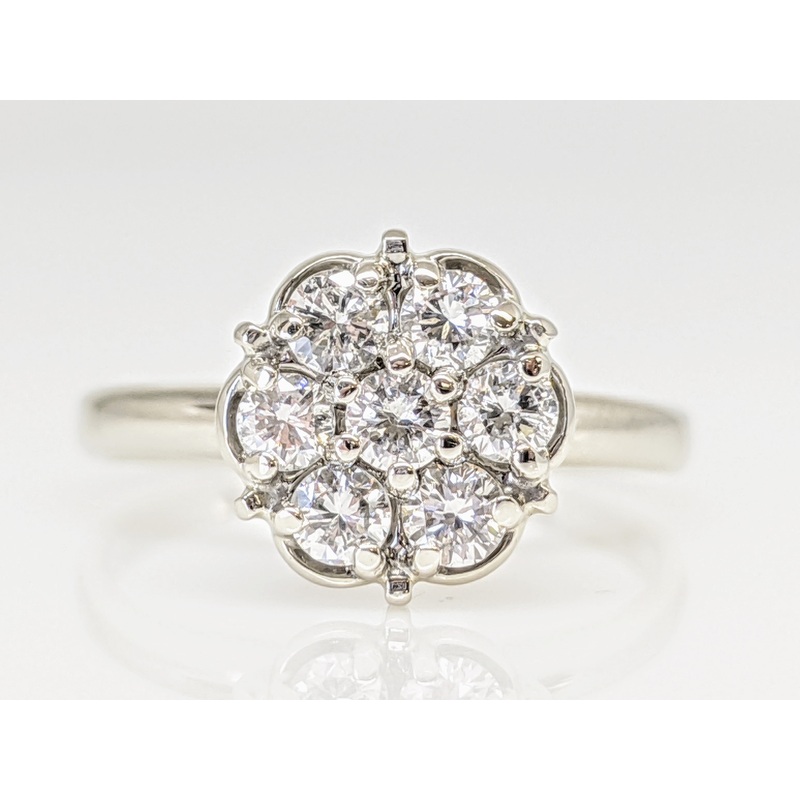 14K WHITE .49 CARAT TOTAL WEIGHT SI2 G DIAMOND ROUND (7) FLOWER CLUSTER ESTATE RING 2.7 GRAMS