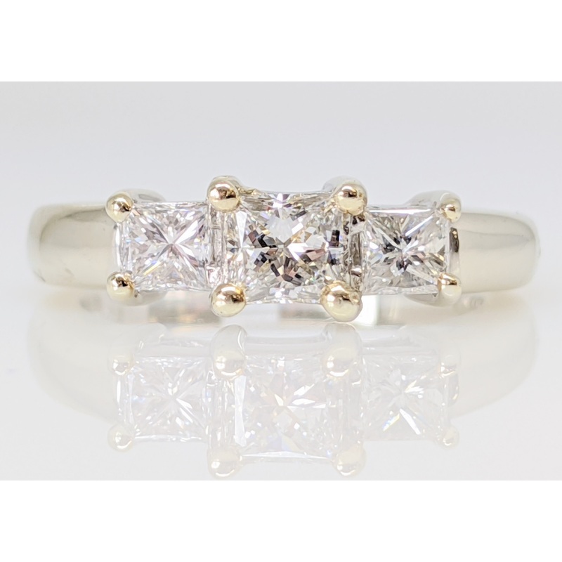 14K WHITE .58 CARAT TOTAL WEIGHT VS2-I1 H-I DIAMOND PRINCESS CUT (3) TRINITY ESTATE RING 4.1 GRAMS